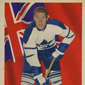 1963-64 Parkhurst Hockey card fronts featured a player picture superimposed against a team-specific background design. Detroit Red Wings were shown with an American flag in the background, regardless of that player's actual birth nation. Toronto Maple Leafs were placed in front on the Red Ensign that served as the national flag at the time. Montreal Canadiens weren't given any flag. Instead, they had parallel bars. Backs feature the player's name across the top, followed by bilingual vital stats and a lifetime NHL record. The rest of the card was for one of three send-in prizes: a tabletop hockey game, a replica Stanley Cup or an autographed puck.