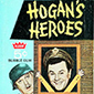 The Hogan's Heroes title is in red at the bottom of the image. A red German helmet holds the card number at the top. These are the only uses of color in the set.