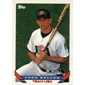 1993 Topps Traded Baseball keeps the same design as 1993 Topps Baseball. Card fronts are highlighted by a white border and a nameplate that is flanked by two diagonal bars. Cards are numbered with a T to help differentiate them from 1993 Topps Series 1 and Series 2 cards.