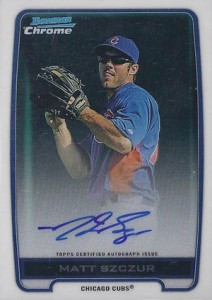 Below is a complete list of 2012 Bowman Chrome Baseball Prospect Autographs. We've included images, team info and draft position.