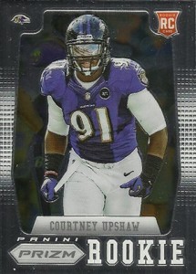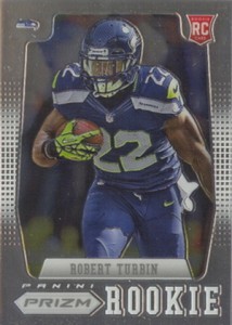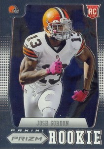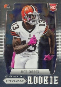 2012 Panini Prizm Football rookie variations fall approximately one per hobby box. Besides regular variations, they also have Prizm Refractor, Gold Prizm (#/10) and Finite Prizm (1/1) parallels. They do not have Red or Green parallels like the base versions.