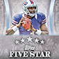 Every box of 2013 Topps Five Star Football has eight cards. This breaks down to a base Rookie Autographed Patch card, another rookie autograph, an autographed patch card from a veteran or retired player, an autographed relic book card or dual autograph, and a jumbo relic. So even with other products boasting a similar number of "hits," it's tough to compare.