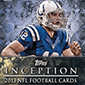 2013 Topps Inception Football, the brand's third gridiron outing, continues to focus on rookies, autographs and bold designs. Every single-pack box comes with a pair of autographs or autographed relic cards as well as a jumbo memorabilia card.