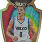 Concourse is the first tier in 2014-15 Panini Select Basketball. Each base card has ten different Prizm parallels. While there are a few cards that combine colors, these are the closest thing in Select to basic Prizms. The majority of Prizms in the Premier tier (#101-200) use die-cut designs along with the shield-shaped background. Most of the Courtside Prizms (#201-300) have a checkerboard look reminiscent of early X-fractors.