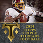 2014 Topps Triple Threads Football keeps the same format that collectors have come to expect, but with some design tweaks and updates. The high-end release includes two packs, or mini-boxes, per box, and six or seven cards per pack.