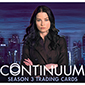 The 2015 Rittenhouse Continuum Season 3 base set has 60 cards. These means detailed looks at the 13 episodes as well as lots of character biography cards. Each card has a serial numbered Gold parallel.