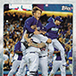 The 2015 Topps Opening Day Baseball variations are best described as fun photos. Celebrations, chilling on the sidelines and creepy-eyed costumed characters are all on display with the short prints. Images from the 2014 MLB Japan All-Star Series are also used on some of the cards.