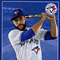 Cards have a posed portrait of players on the front cast against a blue backdrop of the Rogers Centre, the team's home stadium. Backs are highlighted by a safety tip but also include vitals and career stats.