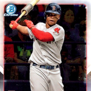 Provided on the final 2018 Bowman Chrome Baseball checklist, there are a total of 15 cards in the set. As the HTA Choice format only has signatures, the base 2018 Bowman Chrome Baseball variations are exclusive to Hobby boxes. While the 2017 version was pretty tough at 1:119 packs, the 2018 rookies are a bit harder to uncover at 1:133 packs.