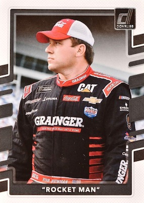 The most obvious giveaway for the 2018 Donruss Racing variations is the nickname in place of the full name. Over half the set includes this feature, whether it's a track nickname, like "Rocket Man" for Ryan Newman, or just the first name for a driver instead of the whole name.