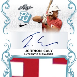 2018 Leaf Perfect Game National Showcase Baseball also adds Patch Autograph cards with a jumbo game-worn relic swatch to go along with the signature.