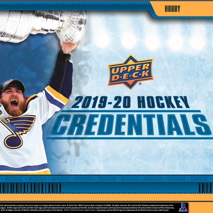 Credentials joins Allure as a debut UD brand for the 2019-20 hockey card season. Both sets feature the same box format of six cards per pack and eight packs per box. Credentials NHL is also be issued on ePack around one month following the main release.