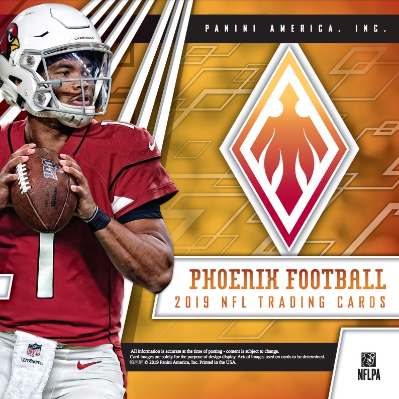 The fourth edition for the NFL brand, 2019 Panini Phoenix Football takes flight once more. Each Hobby box averages one rookie patch autograph, one additional autograph, one relic, and one Color Burst parallel.