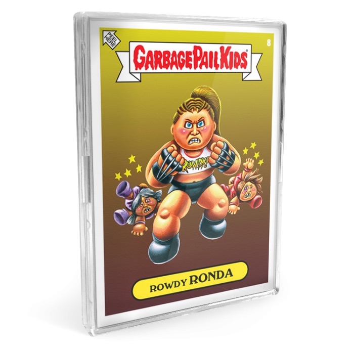 The 2019 Topps WWE GPK checklist is loaded with top names shown as their Garbage Pail Kids alter-egos, including Becky Lynch, John Cena, Ronda Rousey, Seth Rollins, The Miz, and many more.