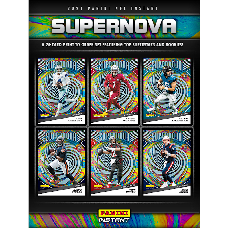 Featuring only current players, 2021 Panini Instant Supernova Football arrives as a full set. Each set promises all 24 players in the series, which includes key rookies.