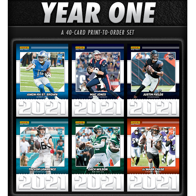Covering a large assortment of rookie talent, 2021 Panini Instant Year One Football features key names from the 2021 NFL Draft class in the print-to-order set.