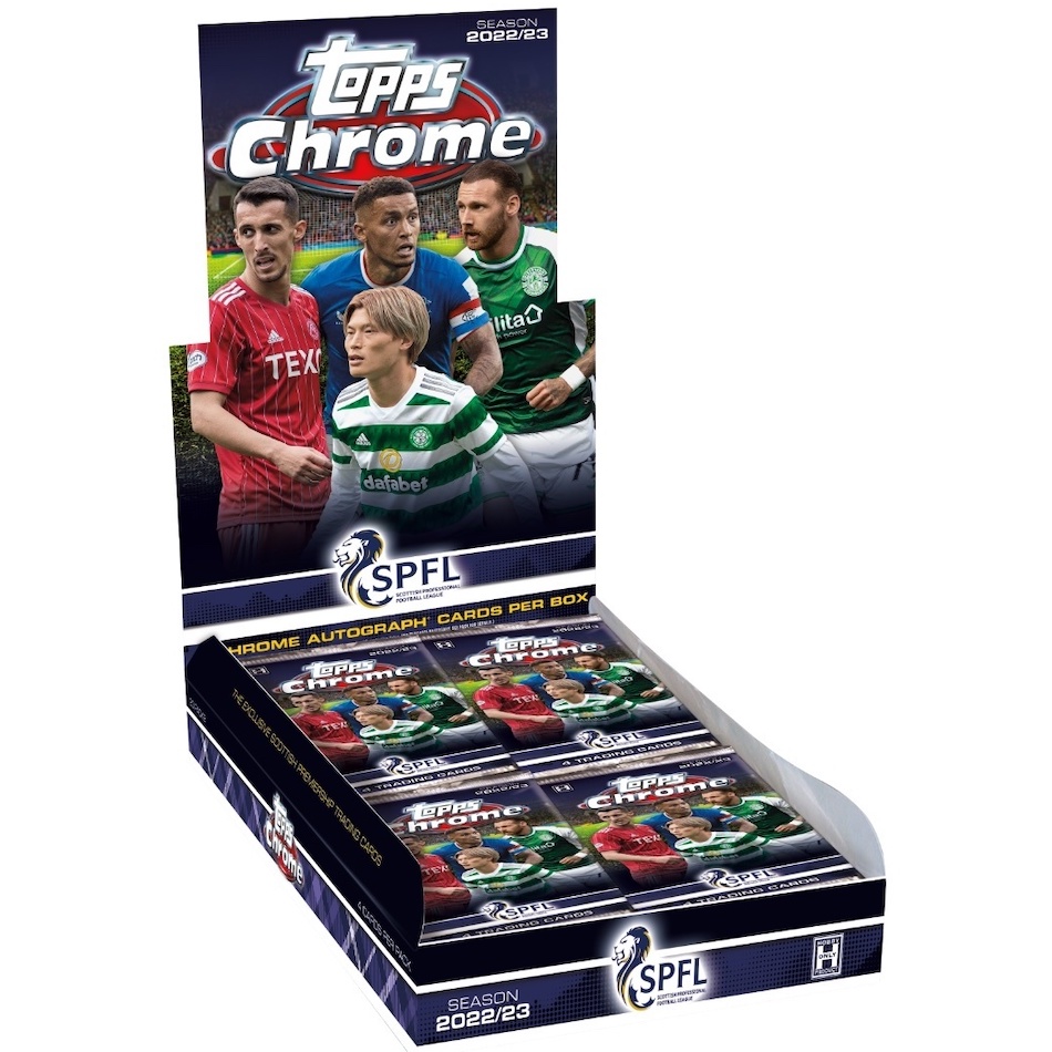 2022-23 Topps Chrome SPFL takes another crack at the Scottish Premiership, celebrating top-flight players and clubs in the Scottish Professional Football League.