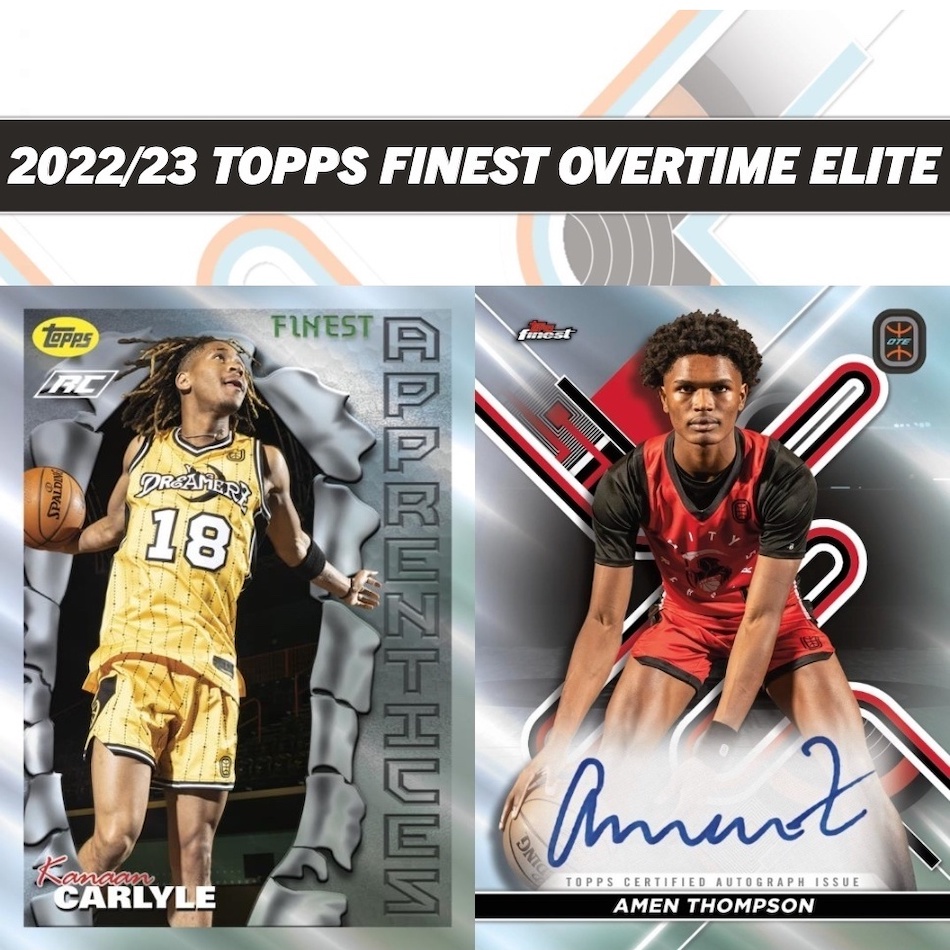 2022-23 Topps Finest Overtime Elite Basketball adds another product to the OTE card portfolio. Each Hobby box contains two chromium autographs.