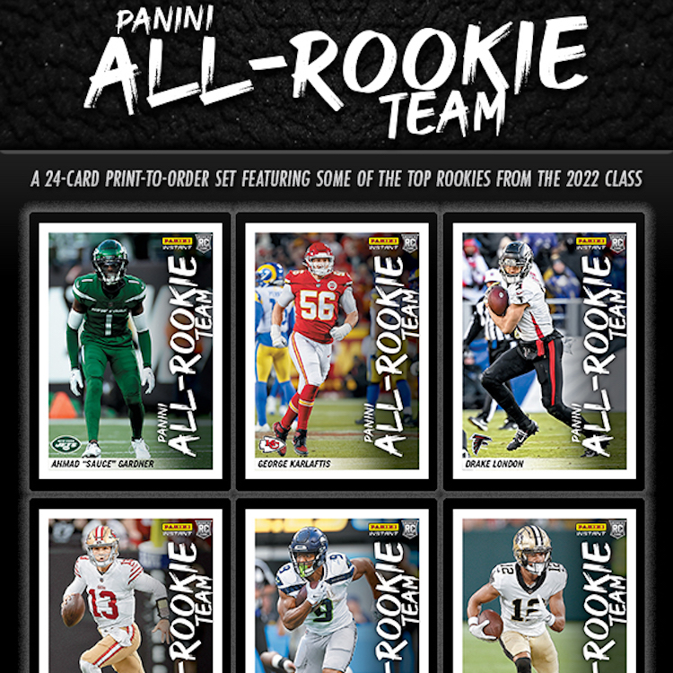 Offered in a print-to-order format, the 2022 Panini Instant All-Rookie Team Football checklist features 24 top rookies. The full base set is included in each order for $24.99.