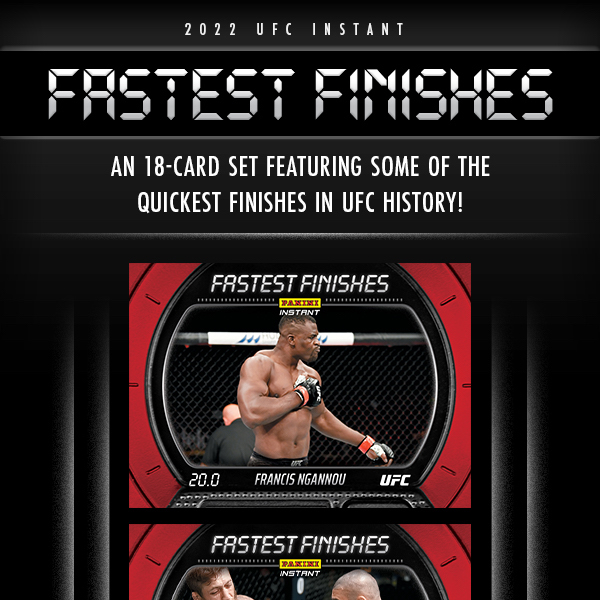 2022 Panini Instant UFC Fastest Finishes revisits some of the quickest wins in Ultimate Fighting Championship history.