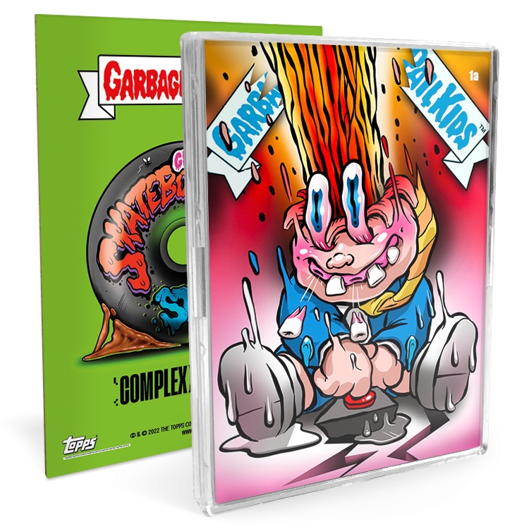 The 2022 Topps Garbage Pail Kids Skateboard Stickers ComplexLand series features the GPK-styled artwork of Rory McQueen.