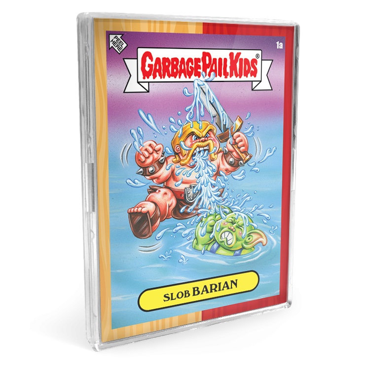 Featuring an exclusive two-toned border, 2022 Topps Garbage Pail Kids X Clash of Clans offers 10 different A-name and B-name characters for a total of 20 sticker cards.