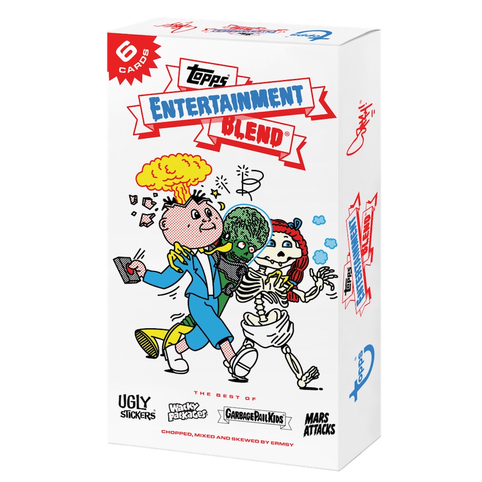 Putting the artist's spin on several Topps properties, 2022 Topps X Ermsy Entertainment Blend is an online-exclusive mashup available for one week.