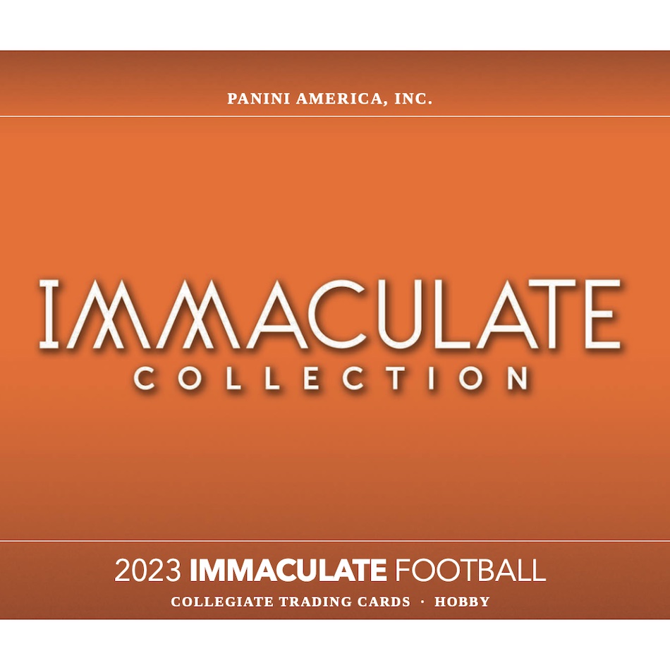 2023 Immaculate Collection Collegiate Football boxes arrive in an online-exclusive format through the Panini website. On August 8 at 12 PM (Eastern), the "Dutch Auction" pricing opens at $1,200 per box and then drops until it reaches $400 or sells out.