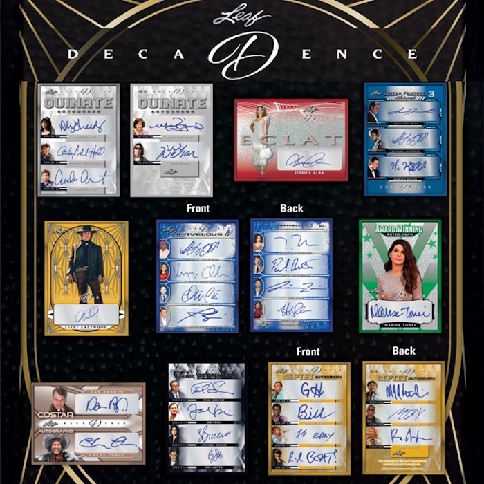 Pop Century switches to a high-end edition with 2023 Leaf Decadence Pop Century. The all-autograph format features at least one multi-signed card per box along with two additional autographs.
