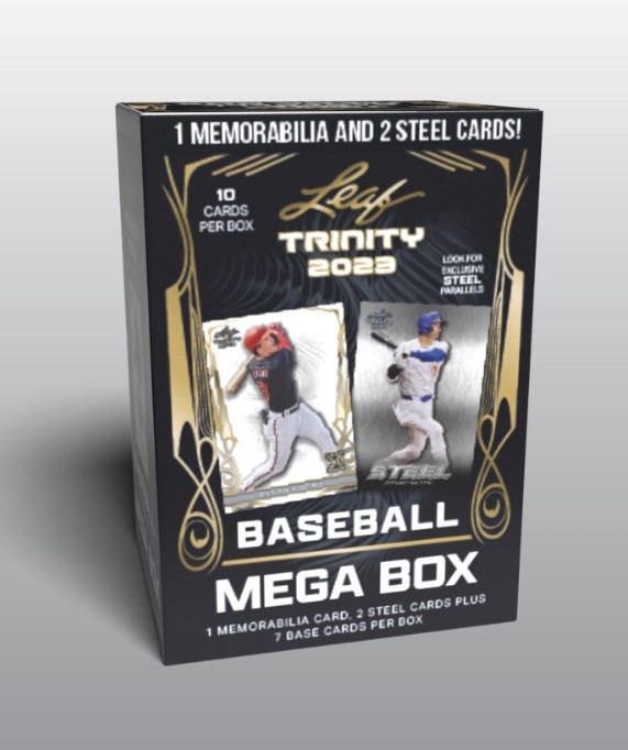 - These unique inserts set the 2023 Leaf Trinity Baseball Mega Box apart. The Steel Cards feature a sturdy, metallic finish that not only gives them a premium feel but also highlights the featured player with sharp, vibrant imagery. These cards showcase a mix of iconic legends like Nolan Ryan and modern-day stars like Shohei Ohtani, adding a touch of history alongside current greatness. The metallic shine and robust build make these cards feel more like collectibles and less like standard trading cards.