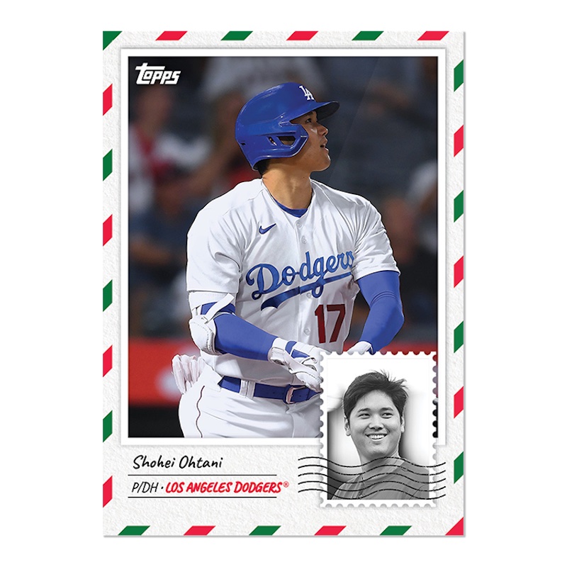 2023 Topps MLB Holiday Countdown Baseball leans into the time of the year with a Christmas card design featuring a stamp-styled secondary image for the player. Slighting dropping from last year, the total set has 20 cards issued in decreasing number order.