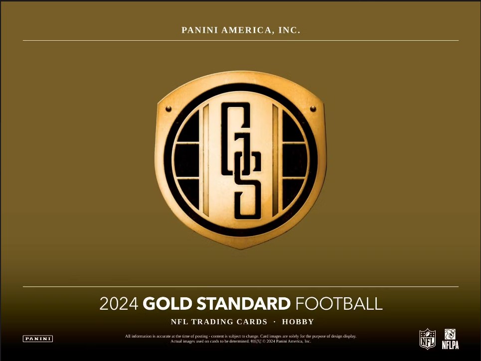 The 2024 Panini Gold Standard Football set continues to deliver high-end, luxury cards with a distinctive gold-themed design. The cards feature a mix of autographs, memorabilia, and parallels, making them highly sought-after among collectors.
