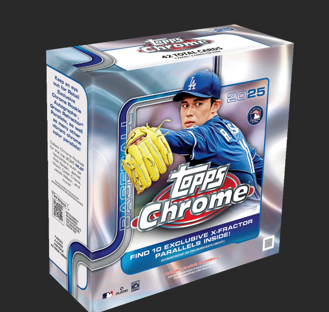 The 2025 Topps Chrome Baseball set, released on July 23, 2025, reaffirms its status as a flagship chrome product in the trading card hobby, emphasizing high-gloss Refractor technology, a robust rookie class, and an expansive array of inserts, parallels, and autographs. This 300-card base set pulls from Topps Series 1 and Series 2 checklists, featuring 100 rookies (RC) and spotlighting emerging stars like Paul Skenes, Jackson Merrill, and Roki Sasaki alongside veterans such as Shohei Ohtani and Aaron Judge. The set's allure lies in its chase elements: over 50 variations, dozens of insert sets totaling more than 400 unique cards, and rainbow parallels extending to 1/1 SuperFractrors. Hobby boxes guarantee one autograph and 12 Refractors, making it accessible yet rewarding for collectors.
