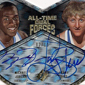 Among them are the die-cut All-Time Forces. Taking the idea further are the All-Time Dual Forces that come with two signatures. Among the pairing are Michael Jordan and Larry Bird, Jordan and LeBron James, and Wayne Gretzky and Mario Lemieux. The set's subjects are also paired with deceased legends in Legacy Cuts book cards. Another interesting set is Personal Touch, in which signers inscribe answers to questions like their favorite food or music.