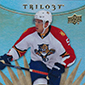 Aaron Ekblad has three cards in the 2014-15 Upper Deck Trilogy base set. The most common is numbered to 799 and is considered a traditional rookie card. That said, few will deny that either of his two autographs are desirable as well. The Level 3 Rookie Premieres card, numbered to just 49, also includes a short inscription.