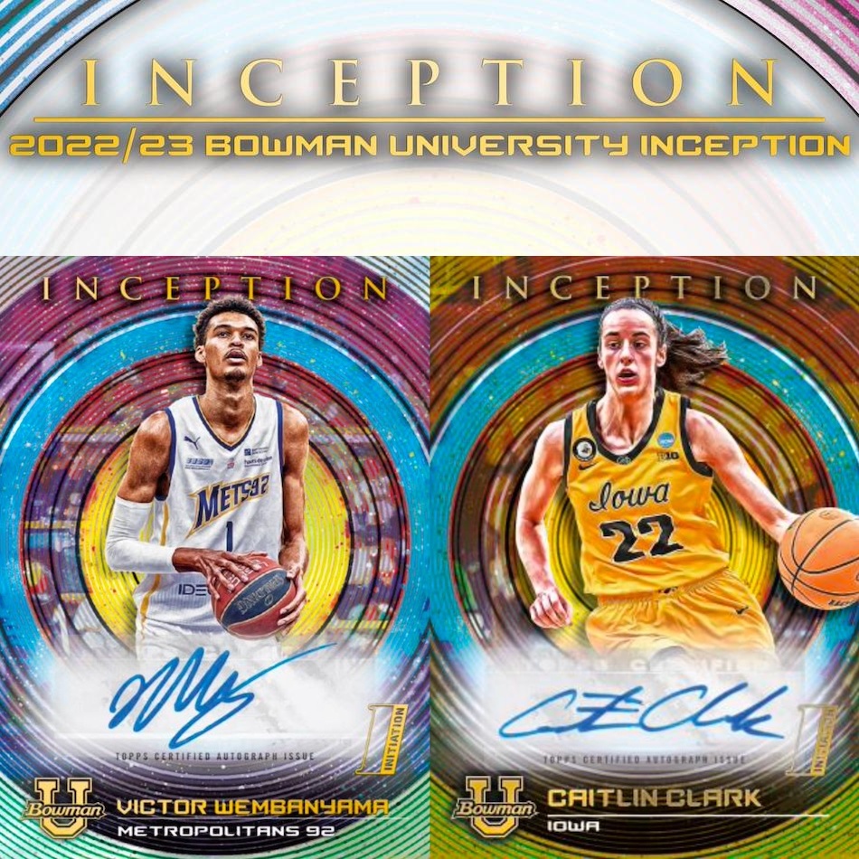 | 2022-23 Bowman Inception University Hobby Box - Wembanyama & Caitlin Clark Autos | $149.95 |