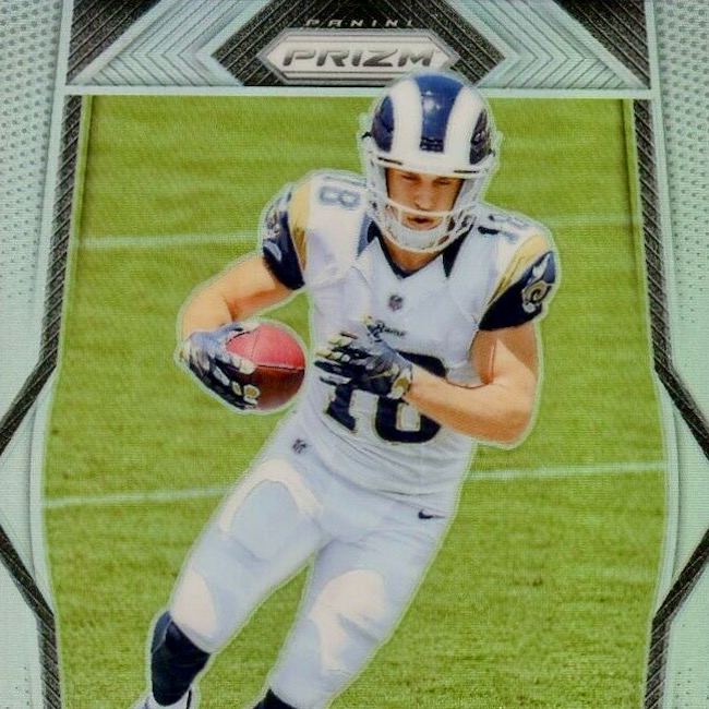 With a more modern look, 2017 Prizm NFL supplies another shiny Cooper Kupp rookie. Similar to Donruss Optic, the limited parallels can produce very high prices.