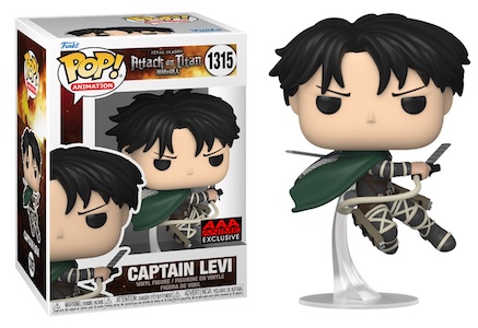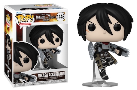 Leading the way, Funko Pop Attack on Titan offers a few options for Eren Jaeger including a black-and-white version issued through BAIT, while the Eren in Titan Form rage variant can be found with a "Hot Topic Exclusive" sticker. Mikasa Ackermann is seen wearing the brown Survey Corps uniform and wielding a short sword in each hand. Additionally, the second release features Levi and Annie Leonhart.