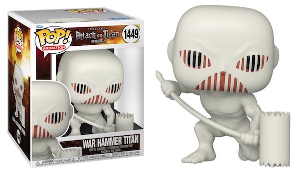 The Colossal Titan vinyls, including both the main version along with the black-and-white FYE/HMV exclusive, come as 6" Super Sized editions. Also released as Super Sized Pops! are the Female Titan and Armored Titan figures.
