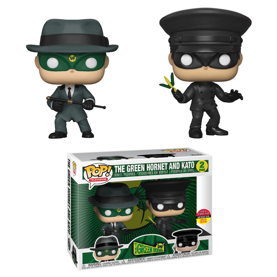 Funko Pop Green Hornet figures pay tribute to the crime-fighting legend. The lineup includes the Green Hornet and his sidekick, Kato.
