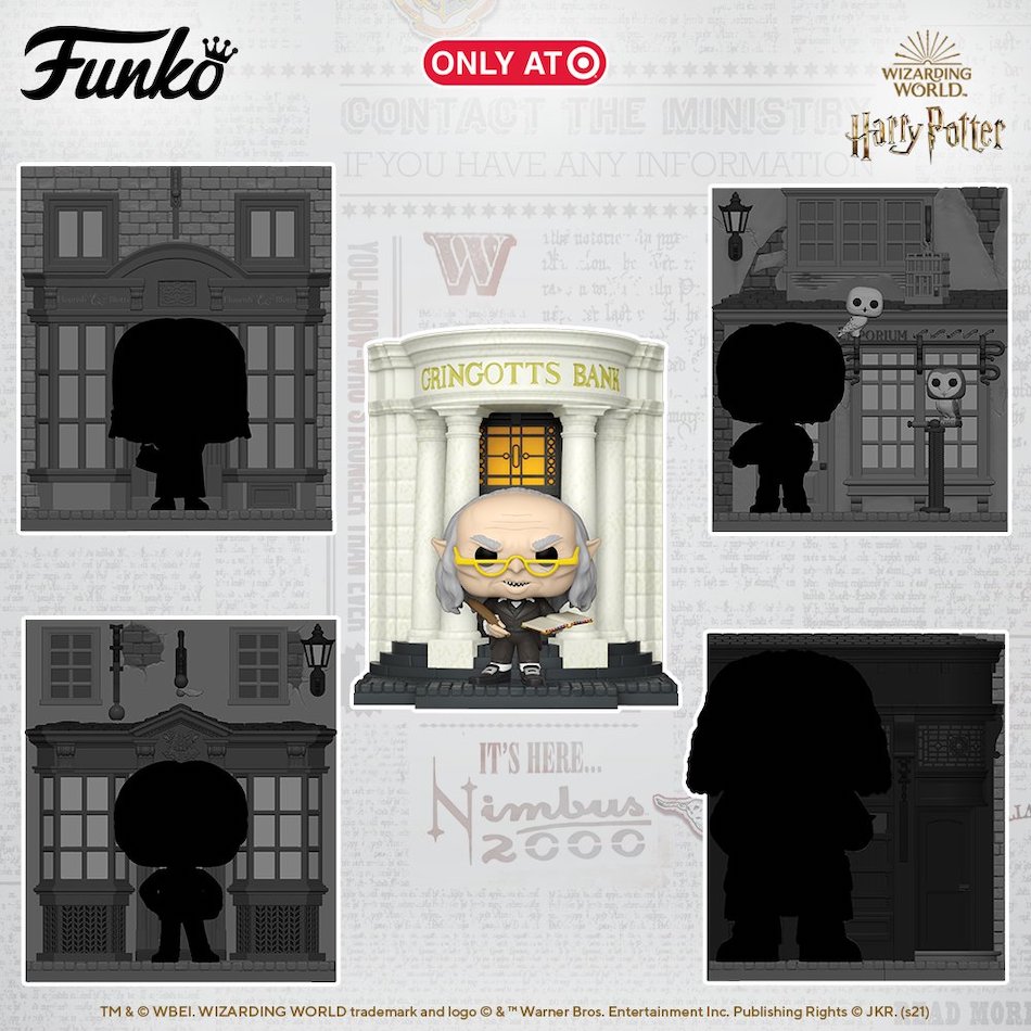 Part of the Funko Pop Harry Potter series, the deluxe set pairs a notable subject from the franchise with a building found in Diagon Alley, a popular shopping area for wizards.