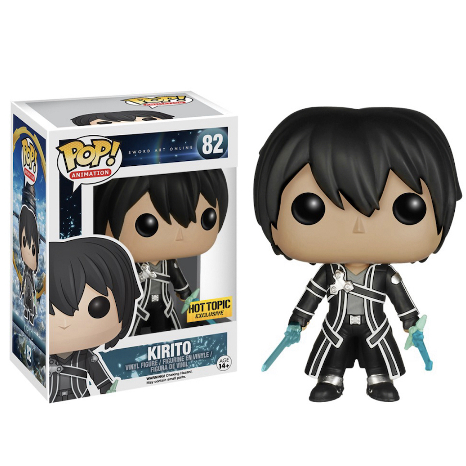 Numbered as part of the main Pop! Animation line, Funko Pop Sword Art Online also offers Kirito with two clear blue swords issued through Hot Topic.