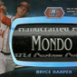 When Topps first announced their plans for 2012 Bowman Platinum Baseball, front and center was one of the best Bryce Harper cards made so far. The one-of-one featured a plate from a bat used by the phenom in the Arizona Fall League. And while a massive bat piece would have been cool on its own, this particular chunk is engraved with "Mondo," giving it some added personality.