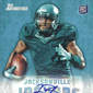 The first officially licensed Justin Blackmon cards were released last week in 2012 Bowman Football. He has several rookies in the product. The top sellers thus far on eBay have been a pair of Red Ink parallels of his rookie card that sold for $265 and $220. His regular 2012 Bowman Football autographed parallels have been trading for around $50.