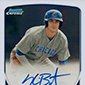 The floodgates opened in 2013 as the USA Baseball cards continued as well as the first Kris Bryant cards featuring him as a pro. Many collectors were disappointed to see that the hard-hitting third baseman wasn't a major part of 2013 Bowman Draft Picks & Prospects. He does have a couple of cards in the set -- his first in a Cubs uniform -- but not a Bowman Chrome Autograph.