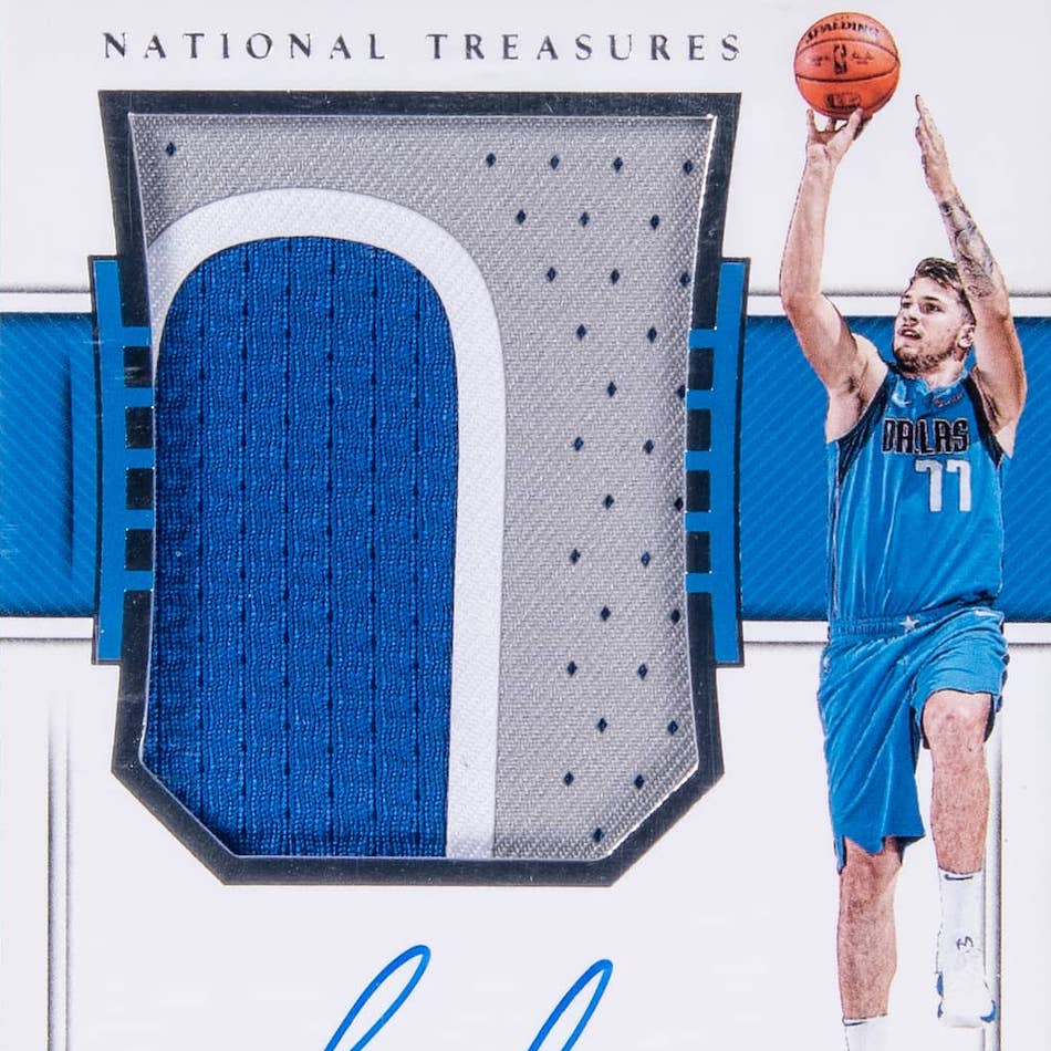 2018-19 NT NBA is easily among the top overall Luka Doncic rookie cards. Numbered to 99 with an on-card signature and jumbo patch, the RPA regularly sees huge sales prices. There is also a horizontal version with 49 copies.