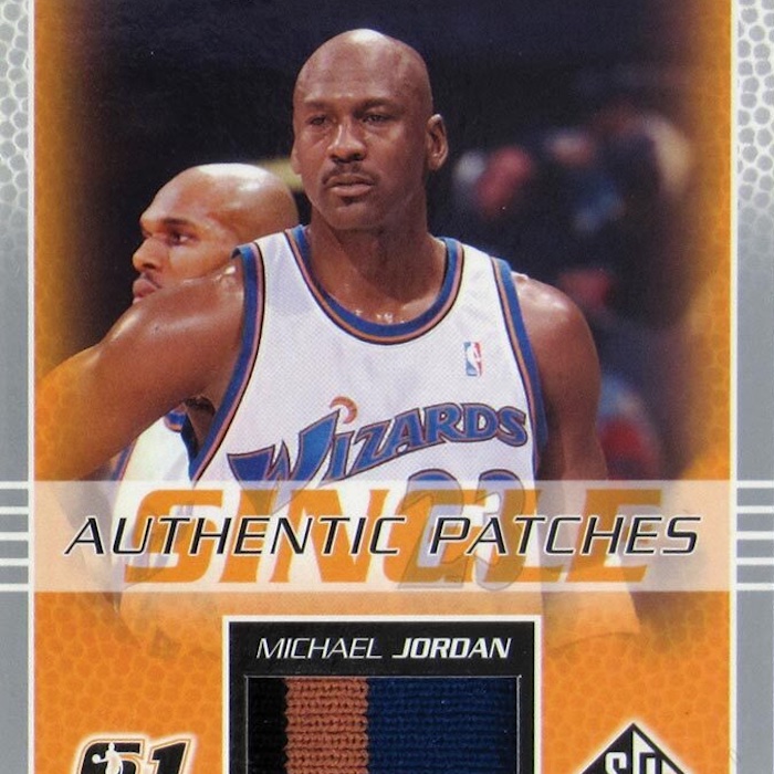 Also found in 2001-02 Ultimate Collection, the Ultimate Game Jersey Patch cards take Michael Jordan game-worn Wizards cards to another level by adding a patch and print run of 100. There are also Silver (#/25) and Gold (#/10) parallels.