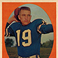 The 1957 Topps Football card set is one of the most cherished of all-time. The colorful backgrounds and dual photographs combine to form an aesthetically pleasing card.