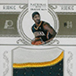 The Paul George rookie from Timeless Treasures is neither timeless, nor a treasure. Again, Panini squeezes a tiny image of George onto a card to make room for an oversized signature area. This could have been a good thing if the autograph was not signed on a feaux leather cut piece. What you are left with is a disappointing rookie card featuring a dis-colored autograph that is is prone to fading.