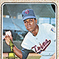 Rod Carew shares his rookie card with the Washington Senators rookie Hank Allen. The bright yellow border and red lettering provides a striking contrast. The facsimile signature adds a nice design element, while the vital information of the player's name, team, and position provides all the necessary detail. Being a high number, it's a relatively pricey card compared to similar players from the era. That said, it's not terribly expense when you take into account his Hall of Fame status and the age of the card.